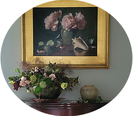 The event featured more than two dozen stunning displays, each pairing a work of art with an imaginative floral arrangement it inspired. Regional and local artists— including students from Wickford Middle School—created the artwork, while members of many garden clubs and professional designers created the interpretive floral designs.